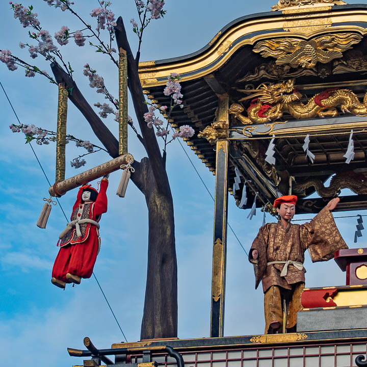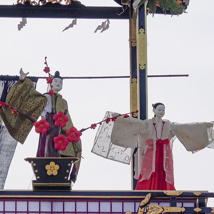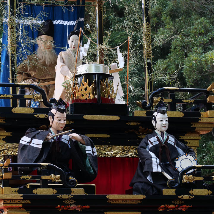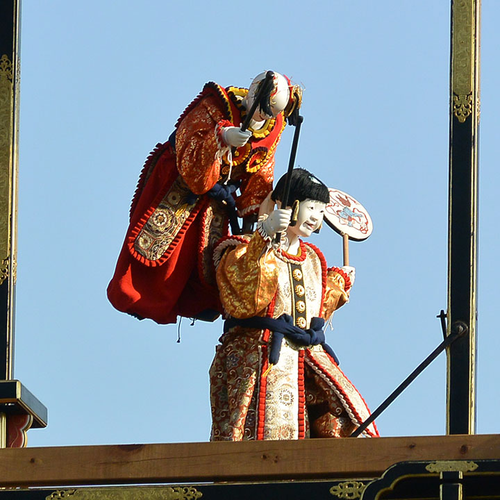 からくり人形は寛政元年(1789)から天保2年(1831)の間に「唐子遊」、「菅公好文木」、「殺生石」、「太公望」、「傀儡師(舟弁慶)」、「山姥の由来」、「枕返し」、「湯取神子」が行われていたと記録に残っている。
