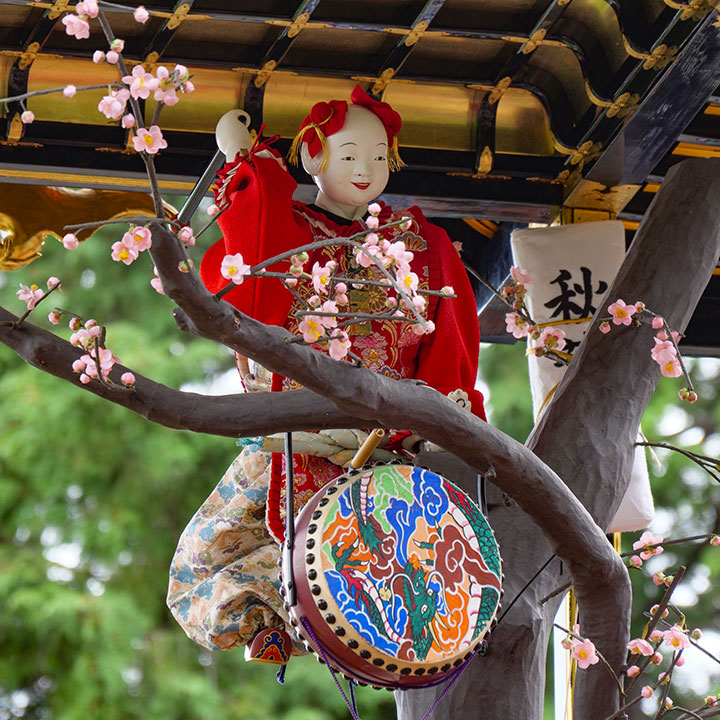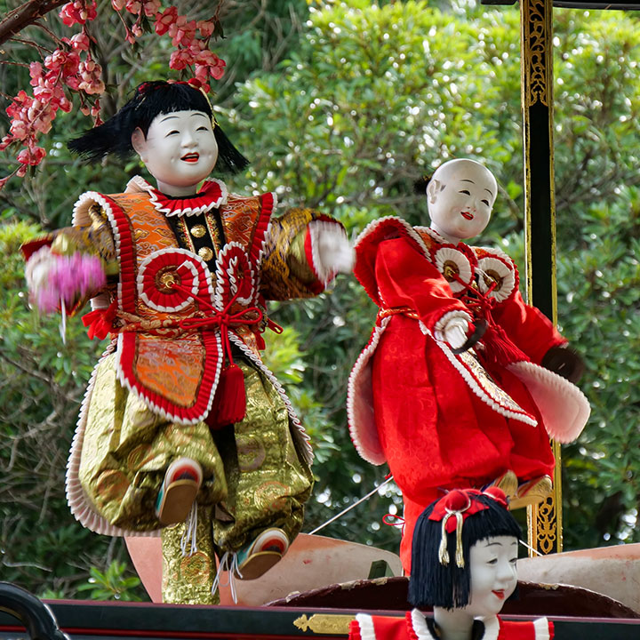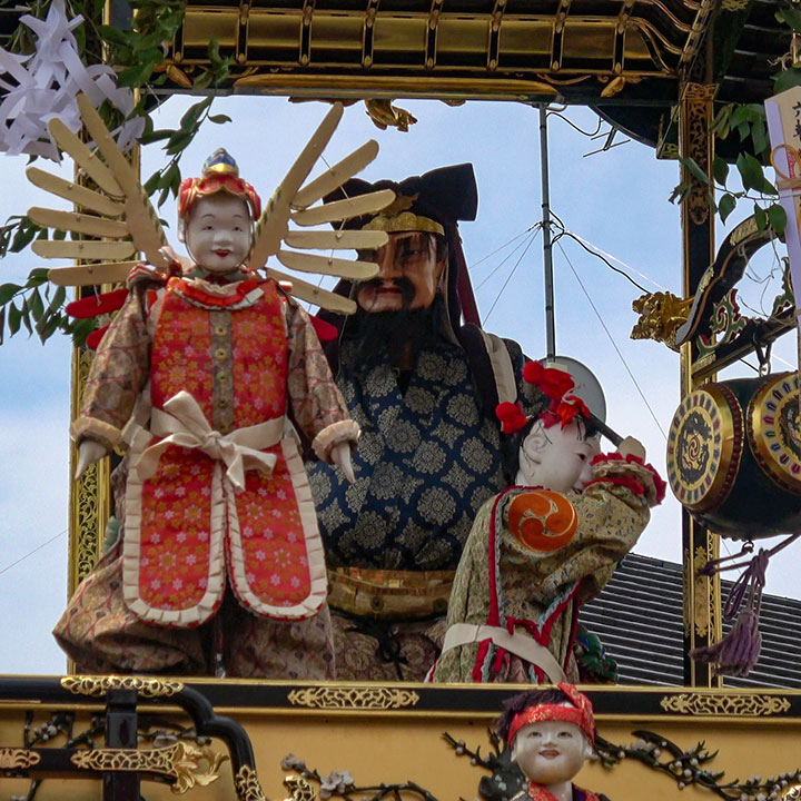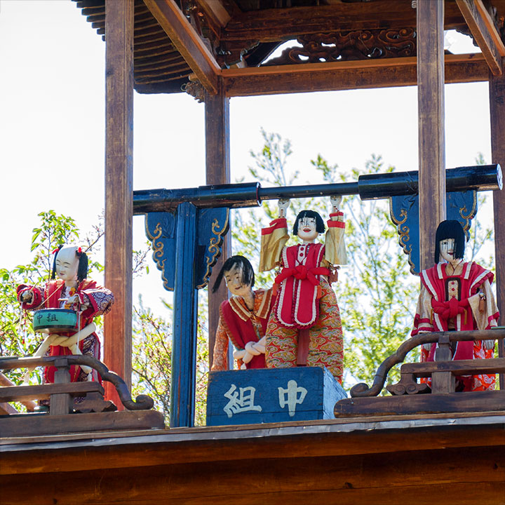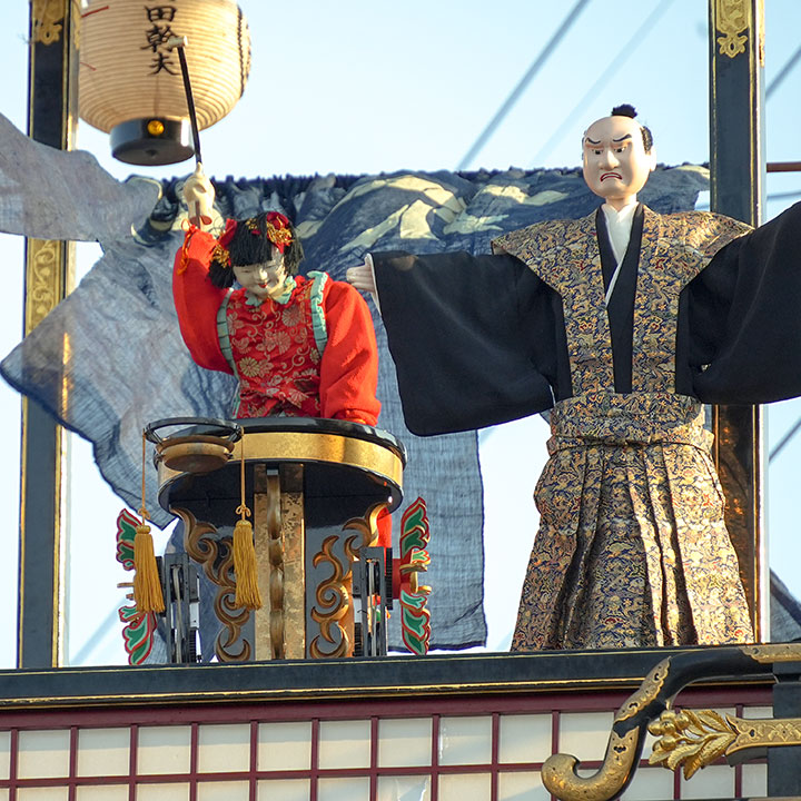 人形4体:采振り人形、太鼓撃唐子、鳥舞唐子、大将人形(関羽)