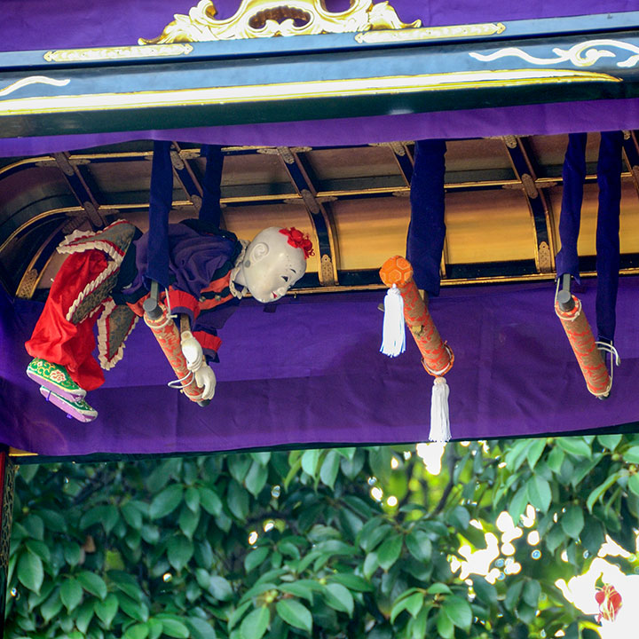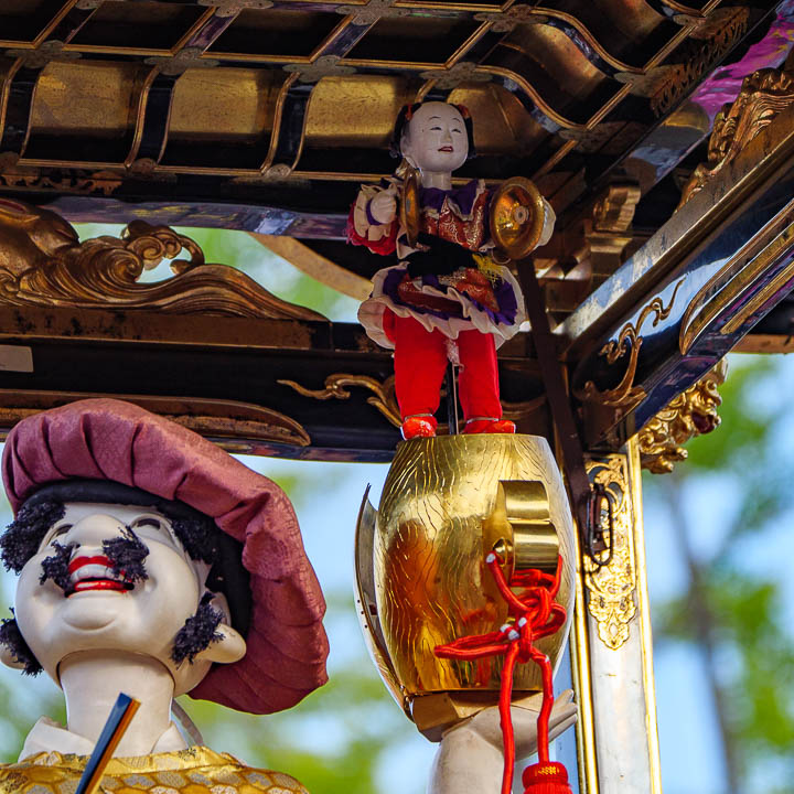 演技次第:前方の唐子がチャッパを打ち、唐子が蓮台を回すとせり上がり、天井から釣り下がった太鼓を打つ。