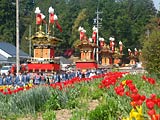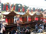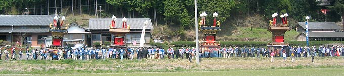 特に神明神社はみごとな劇場スタイルになっていて階段状になった神社前の観客席前に六台並ぶとみごとに目の前でからくりが見えるようになっています。