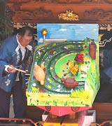 久田見祭りの一番の特色は「糸切りからくり」と呼ばれる人形からくりです。操作する部分と人形が直接糸でつながっていないからということです。