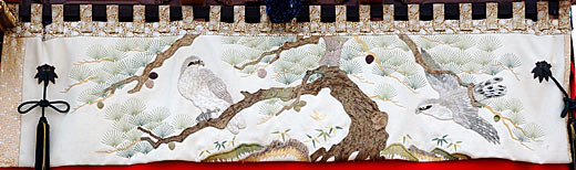 | 乙川 殿海道山「源氏車」 「白地に松鷹の刺繍」 |