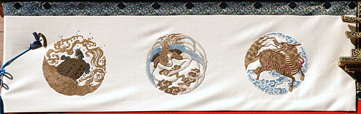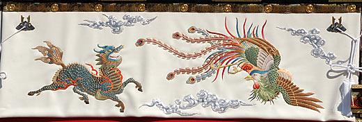 | 東区古出来町 「王羲之車」 「麒麟・鳳凰・亀・龍・虎の刺繍」 平成16年新調 |