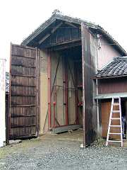 木造土壁で古さを感じさせますが,内部で鉄骨による補強がしてありました.木製開き戸. |