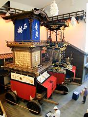 旧楽田(横町)の車山が保存・展示されています. | 名栗町・下本町・中本町・鍛冶屋町の車山が納められている. 館内では,各種展示物とともに,常時車山を見学する事が出来る. |