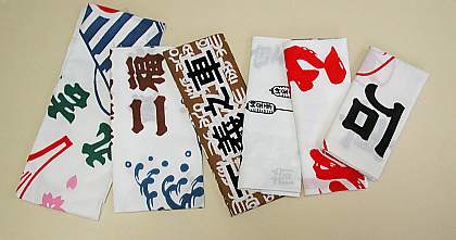 文字通り手をふく、汗をぬぐうという用途よりも、祭りでは装束の一部として、頭に巻く、肩にかける.