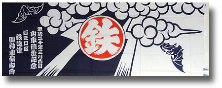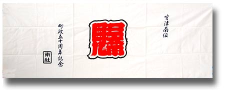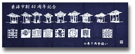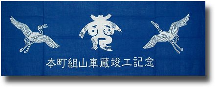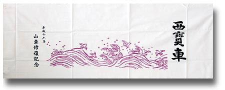 伝統の豆絞りは西寶車、雷神車の名入り豆絞り