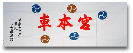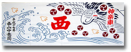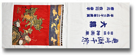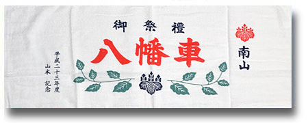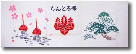 『小治田之真清水』から小田切春江の描く「亀嵜神明の祭礼」を手拭にしたもの