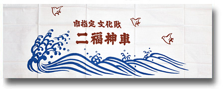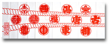 平成22年に開催された「大山車まつり」に参加した13輛の山車関係者が着用した.曳綱と13輛それぞれの紋が染められている.