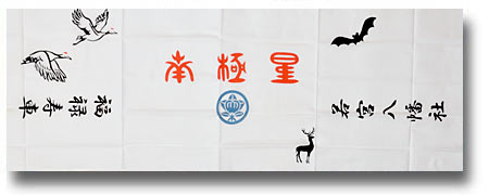 福禄寿車の別名「南極星」と山車彫刻の蝙蝠(こうもり)、鹿と水引幕の鶴