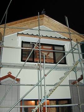 外観は,ほとんど完成に近づきました.遠くから見ても,近くで見てもホンモノの山車蔵にしか見えません. |