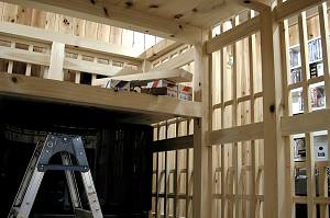 この日は蔵内で山車の建造中.これも細部を残すのみ.檜の香りが充満で,気分爽快!